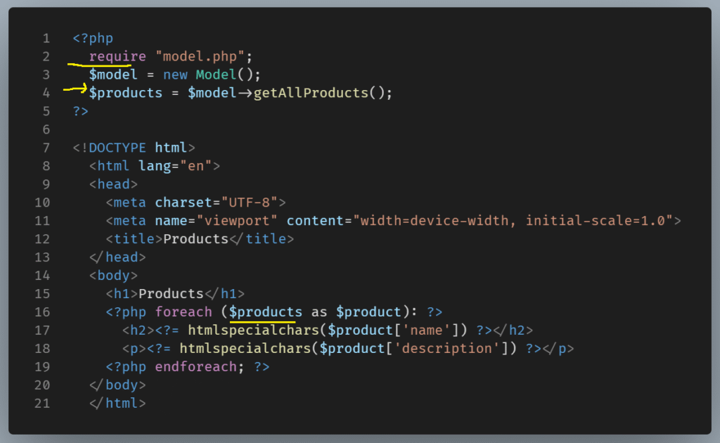 We’ve separated the PHP script into a model, view, and controller.