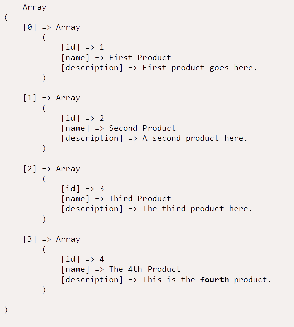 In order to do this we store this associative array to a variable named $products.
