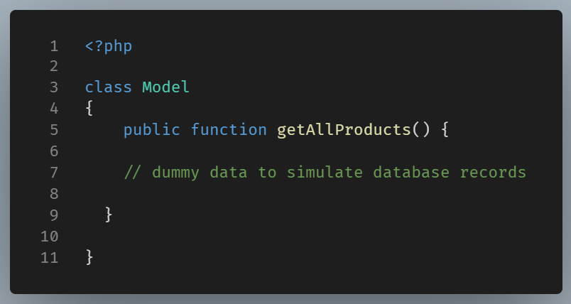 Let’s make a file named model.php and put in the PHP opening tag.