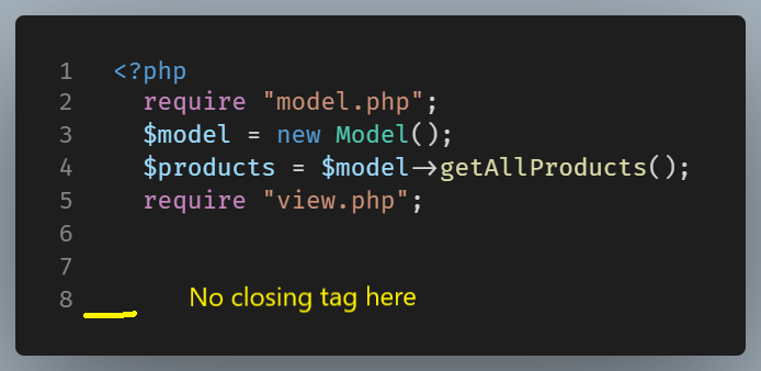 In order to use this view file, we return back into the index.php file and require it.