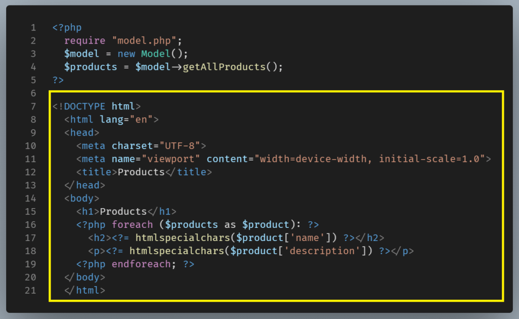 This is standard PHP code that combines database data fetching and HTML data presentation.