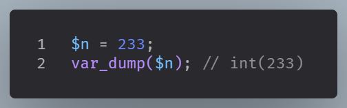 In the following example, $n is an integer. The PHP var_dump() function returns the data type and value: