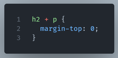 This says: “If a <p> comes right after an <h2>, remove the top margin.