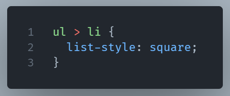 Here, only the first-level <li>s inside the <ul> get styled. If there are nested lists, those deeper <li>s won’t be touched.