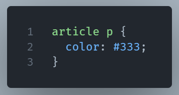 This selector means: “Target every <p> inside an <article>—no matter how deeply nested.” It doesn’t care if the <p> is a direct child, grandchild, or four levels deep. It just finds it.