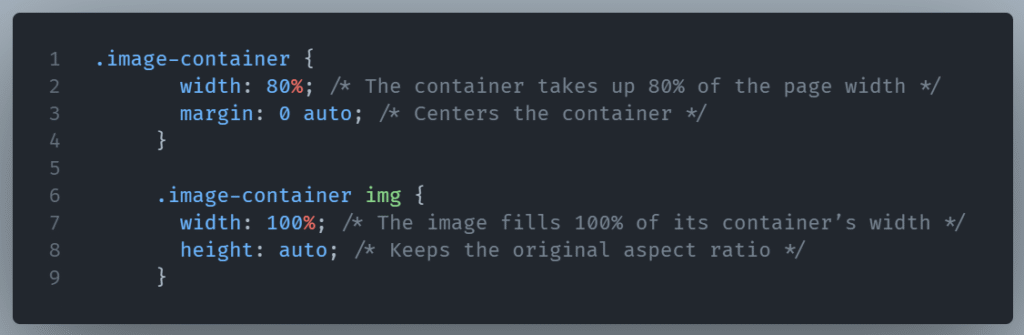 Percentages let containers stretch or shrink relative to their parent, which is perfect for responsive design. For example, setting a container’s width to 80%: