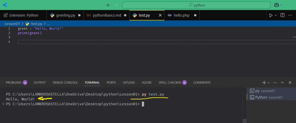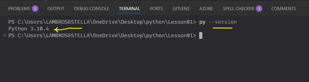 The py command locates and runs the appropriate version of Python installed on your system. For example, py runs the default version, alternativly, py -3.10 runs this specific version provided that is installed in your machine.