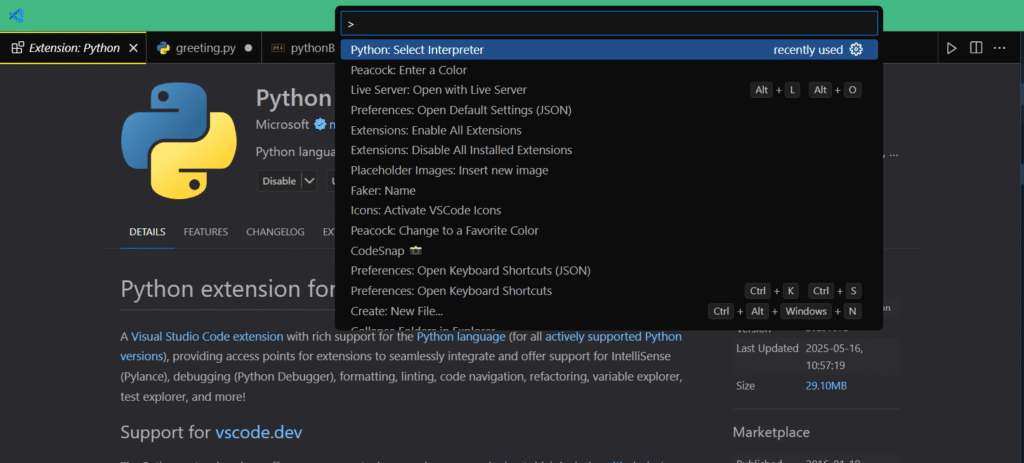 Click Ctrl + Swift + X to open it and then on the search input field type “Python”.