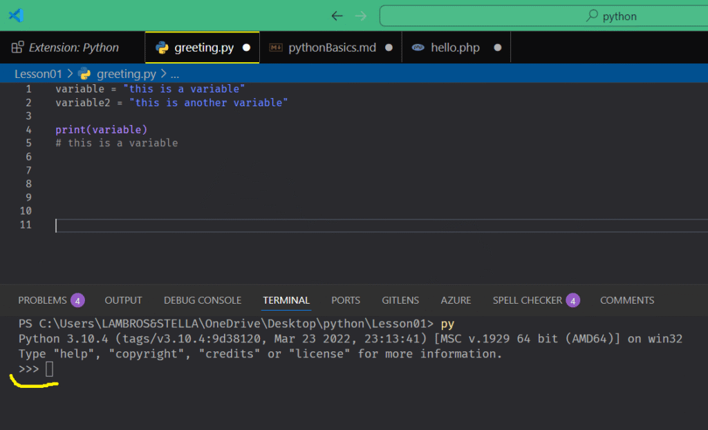 We call this a REPL. A REPL, pronounced “REP-UL”, lets you interact with your computer using Python.