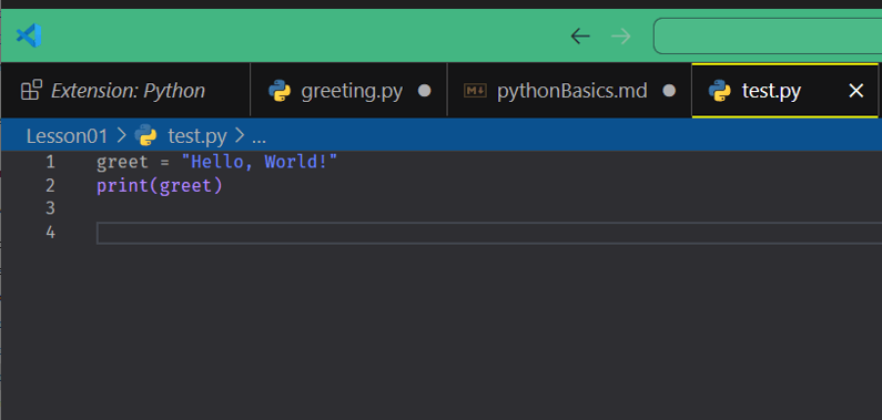 Inside that file I’m going to create a variable named greet and give it a string value, the classic “Hello, World!”.
