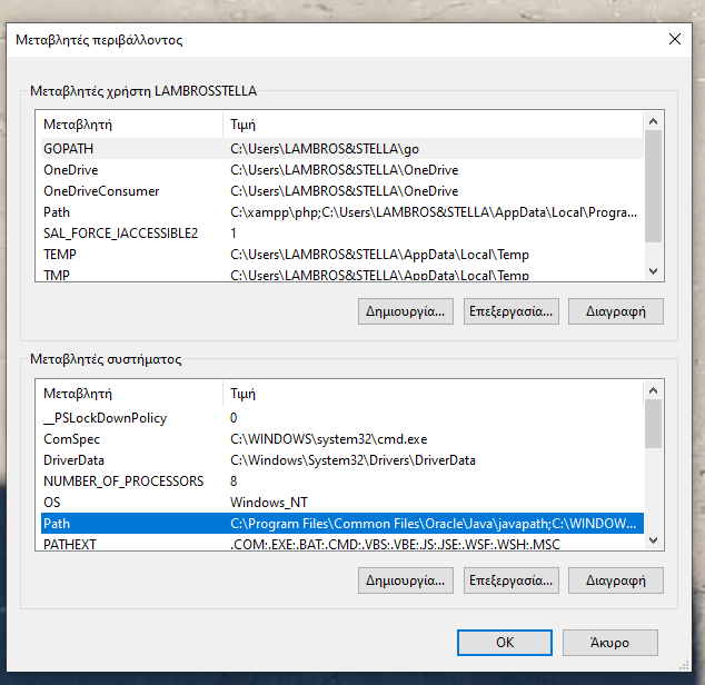 5. In the System variables section of the Environment Variables window (below), highlight Path and click Edit.