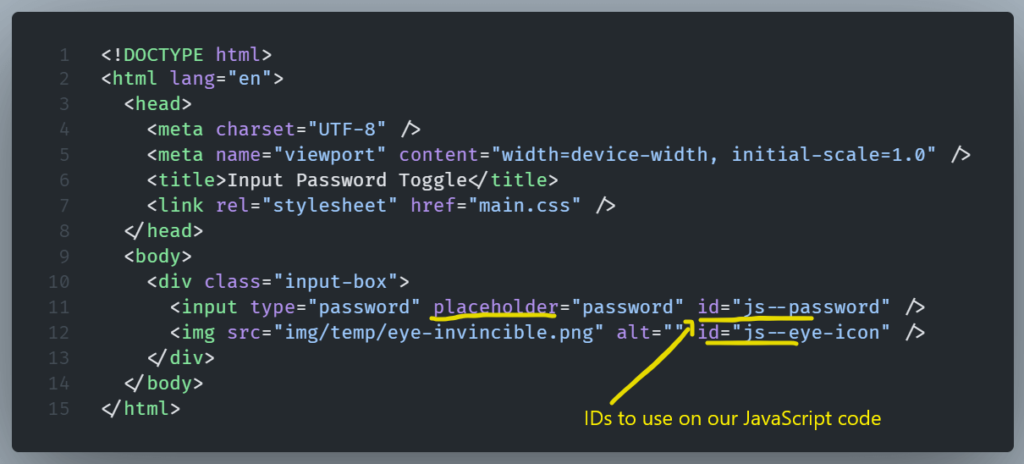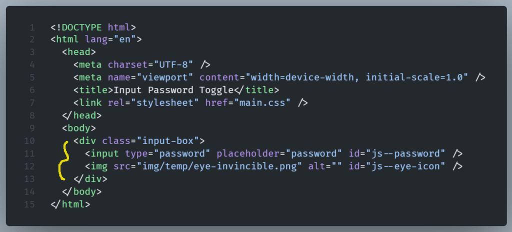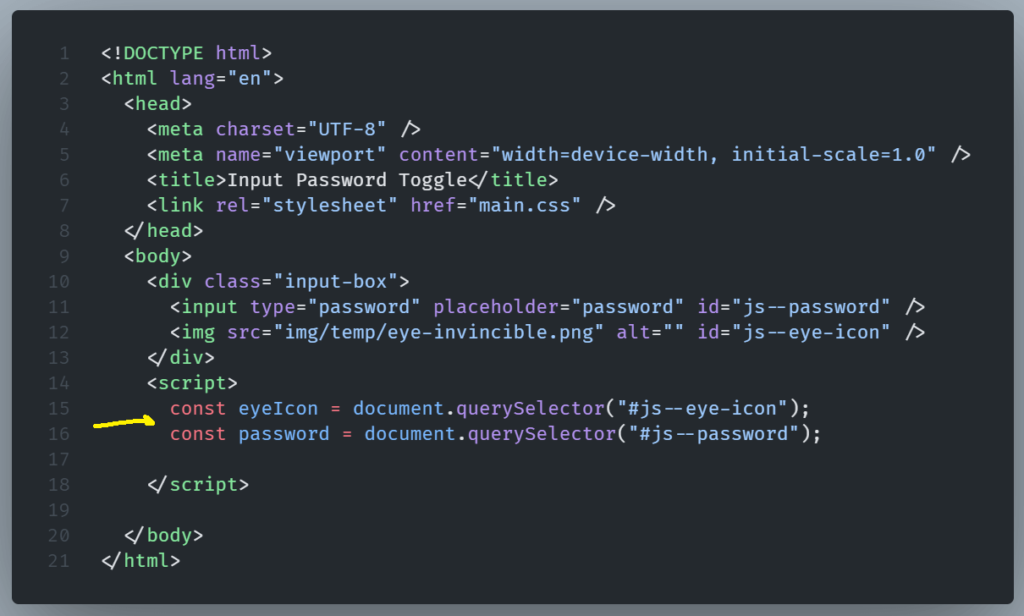 Inside it, we are going to develop our JavaScript code so we can toggle password visibility.