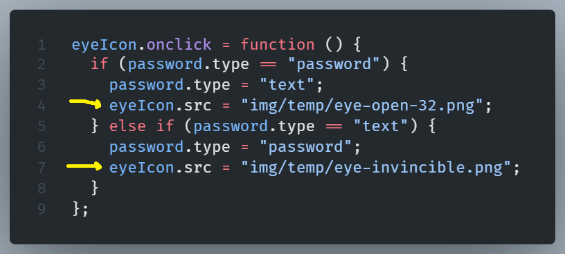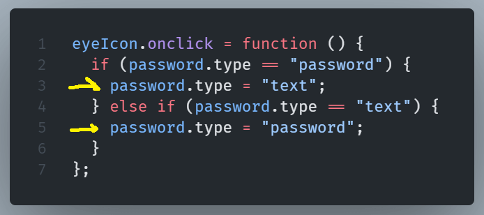 We then going to create a function that will make the password visibility toggling possible.