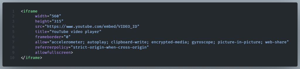 You can embed videos in iframe elements by copying from services like YouTube and Vimeo, or setting the src attribute to the video’s URL.