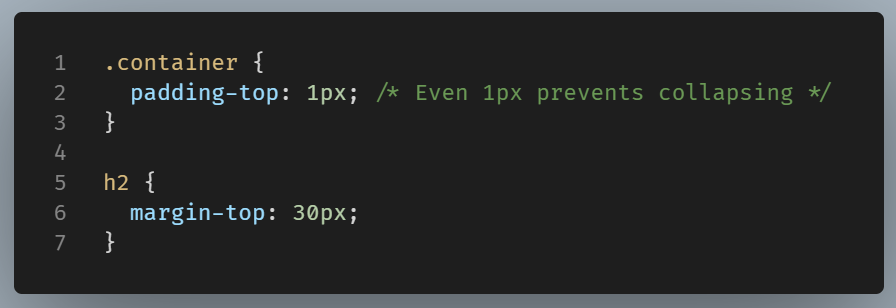 Margins only collapse when there’s no visible separation, so a padding or border stops this.