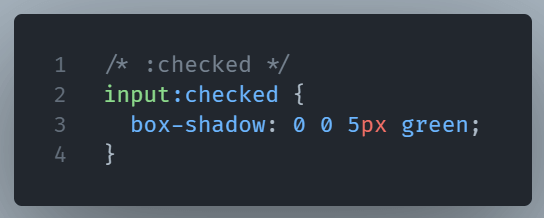 :checked– This selector represents any input or option that is checked.