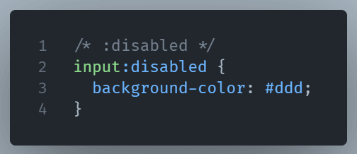 :disabled– Styles Form elements which are not interactive.