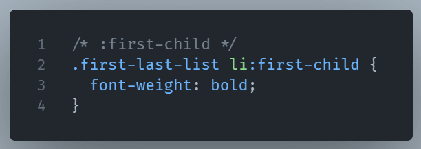 :first-child– It selects the element if it’s the first child of its parent.