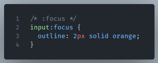 :focus– Activates when an element is focused (e.g., clicking into a form field).