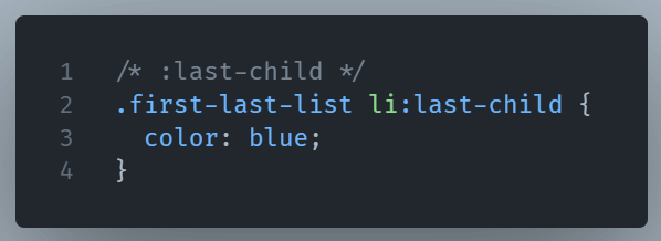 :last-child: This pseudo-class represents the last element among a group of sibling elements.