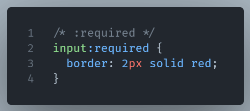 :required– It selects and style form elements with a “required” attribute.