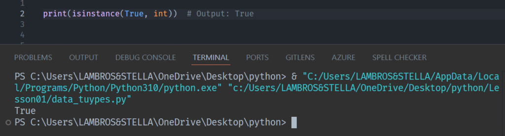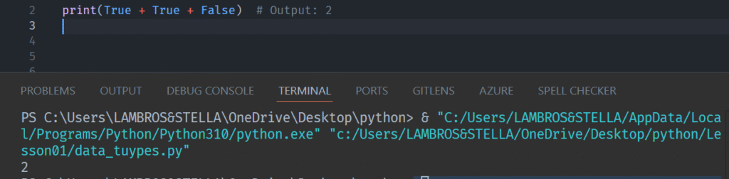The bool type actually inherits from int. That means True and False are essentially integers under the hood: