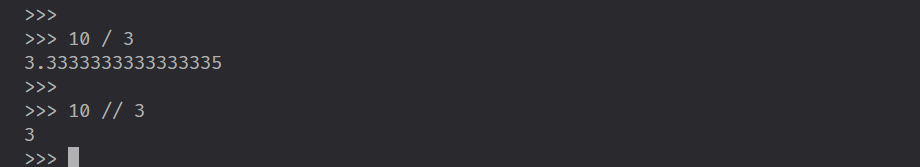 In Python there is a second type of division. The floor division. This type of division, contrary to the typical one that can return a decimal number, returns a rounded down number.