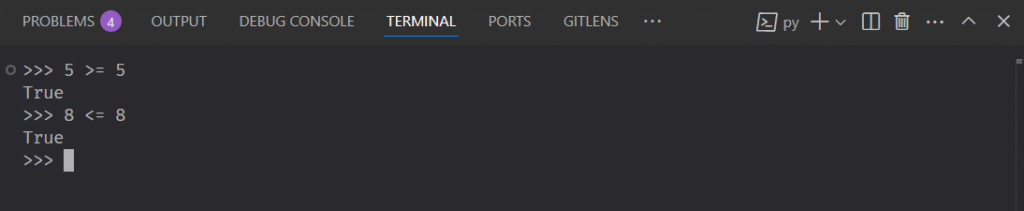 Examples of the Greater Than and Equal and Greter Less and Equal operators.