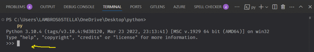 The Python REPL is now running.