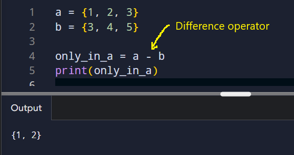 The difference operator (-) finds items that exist in one set but not the other.