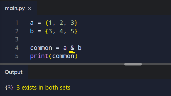 The intersection operator (&) finds items shared by both sets.