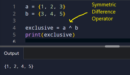The symmetric difference operator (^) finds items that appear in only one set, but not both.