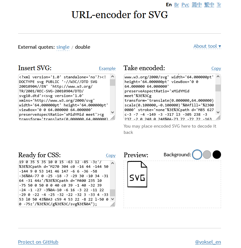 Below is an example of a SVG icon loaded on a URL encoder for SVGs.