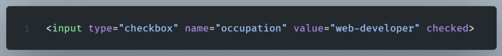 A few attributes, including the “checked” attribute (example below), have a slightly different syntax.